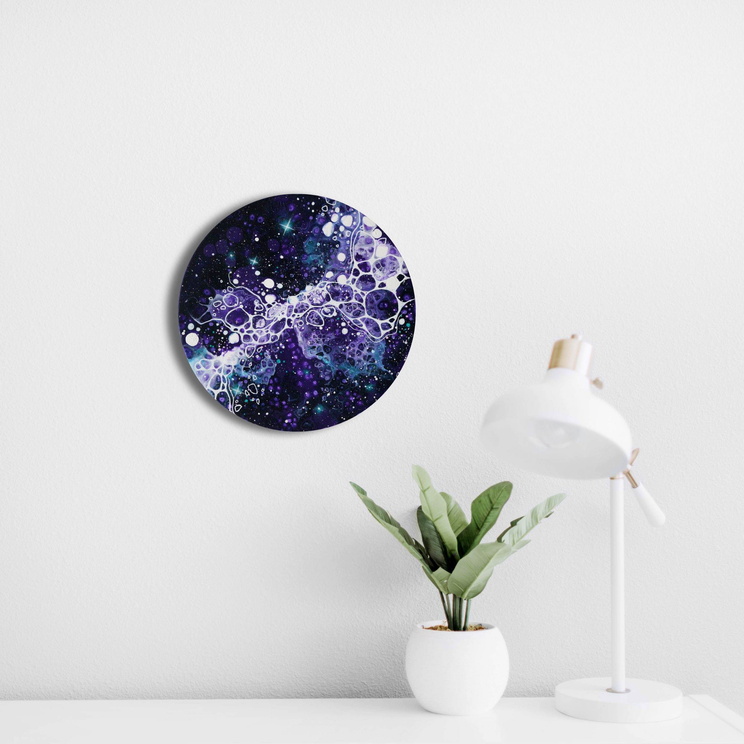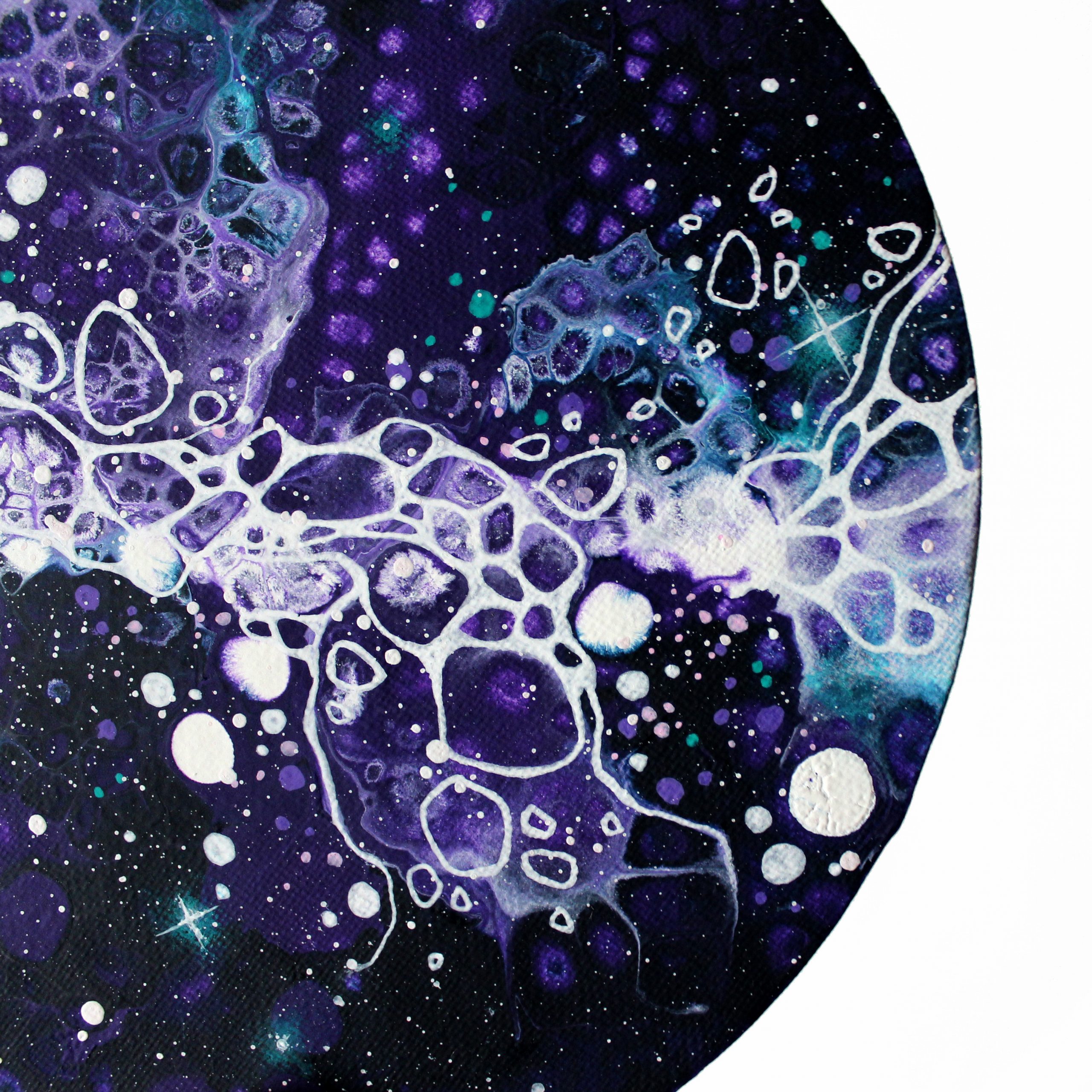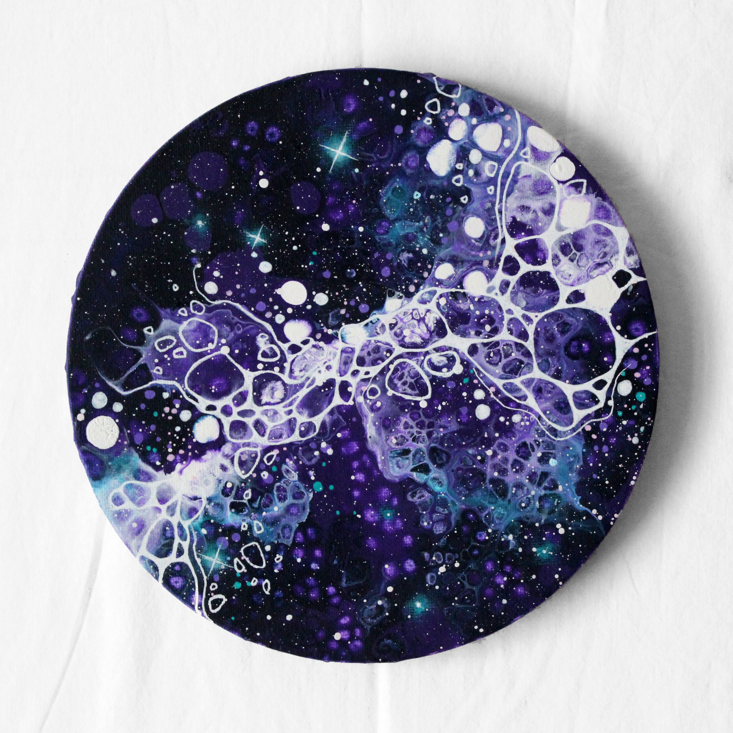 Une petite toile de 20cm de diamètre, créée à partir du mot « dreamy ».