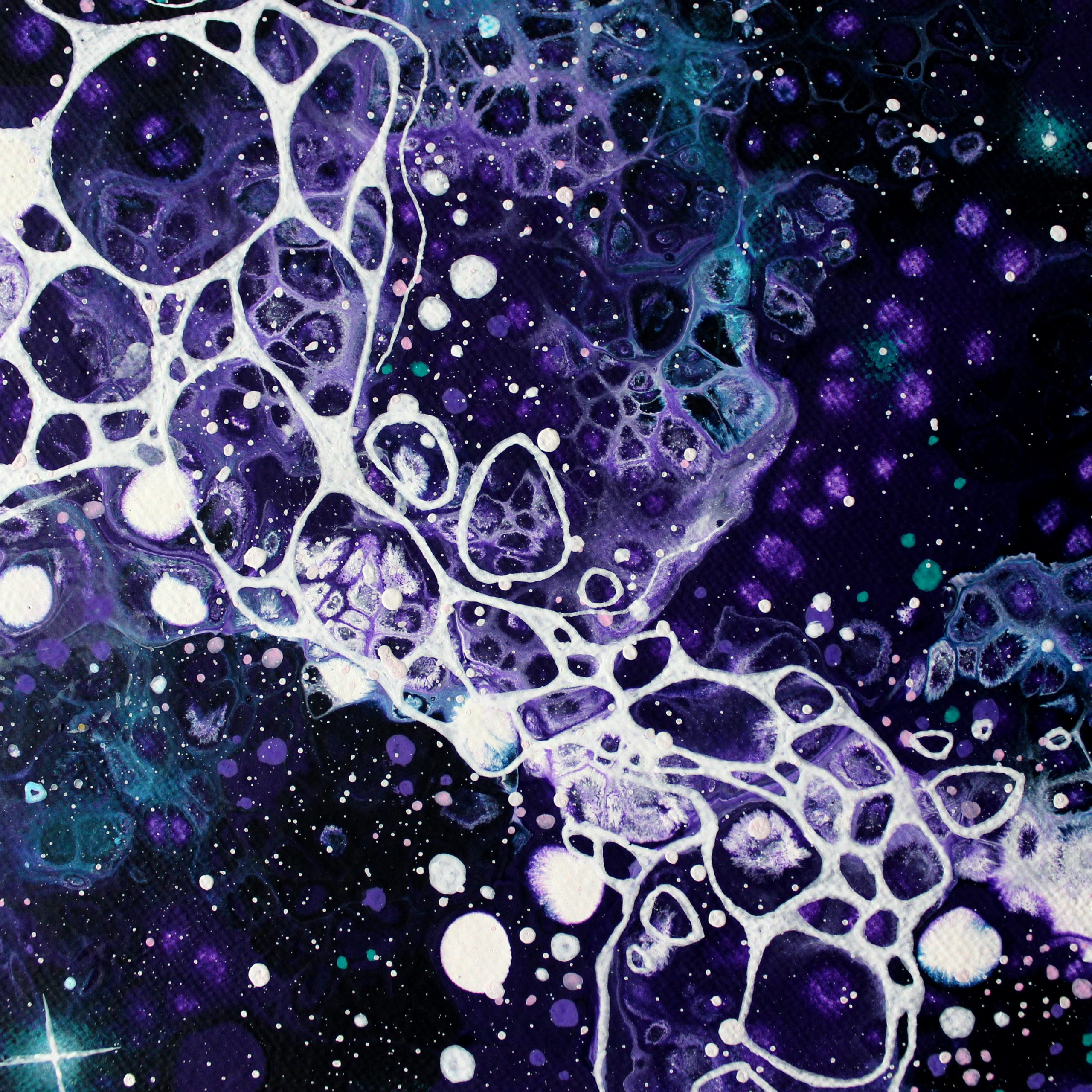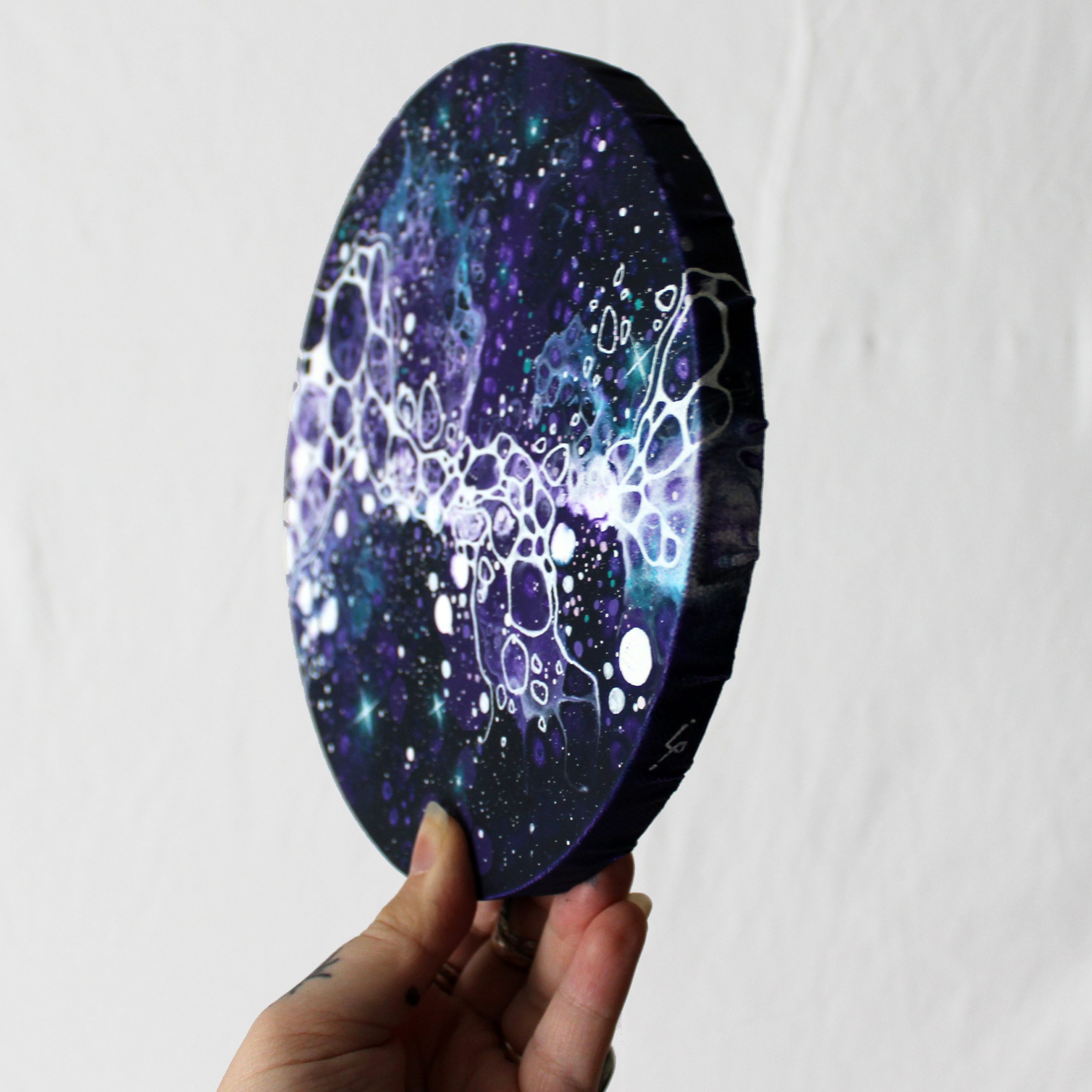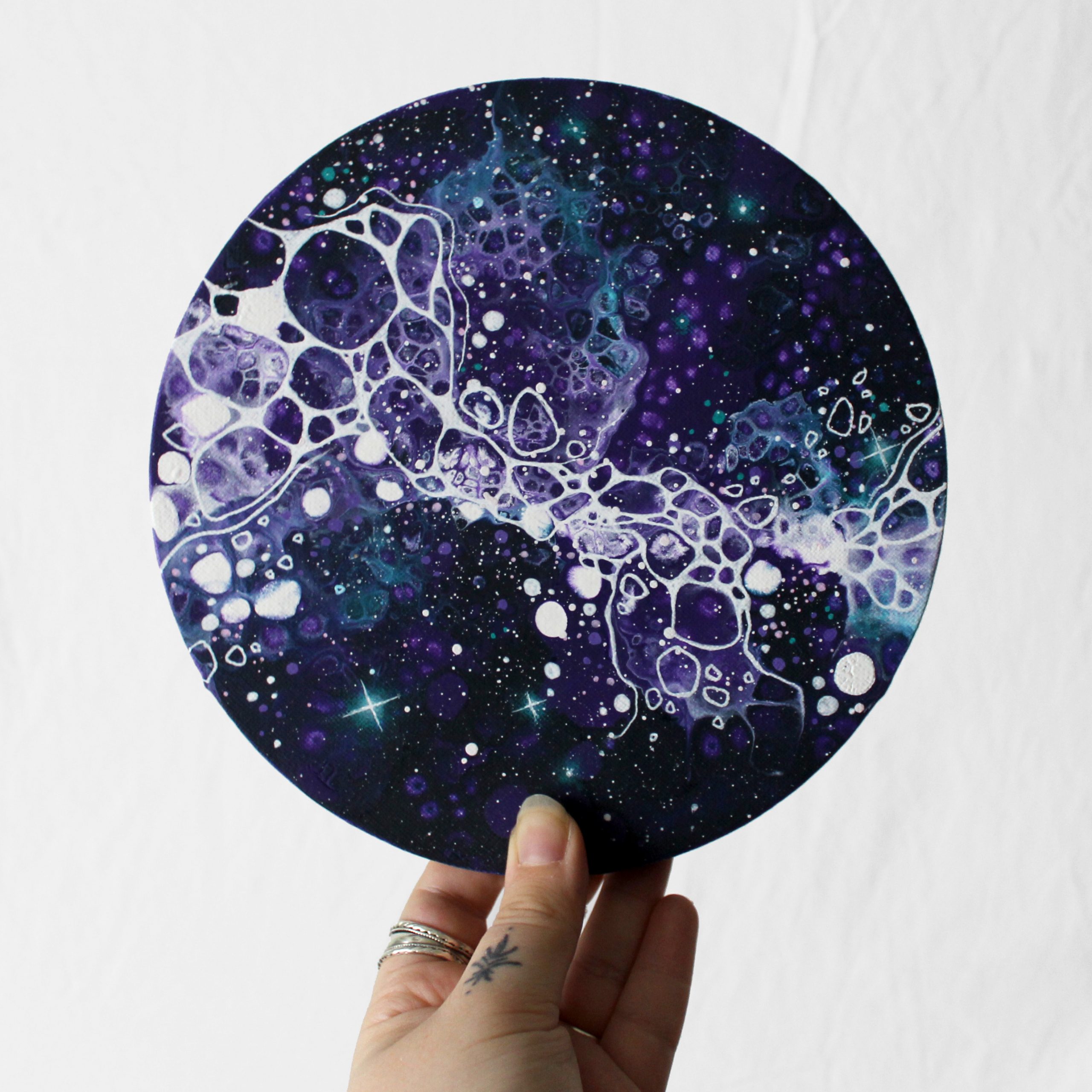 Une petite toile de 20cm de diamètre, créée à partir du mot « dreamy ».